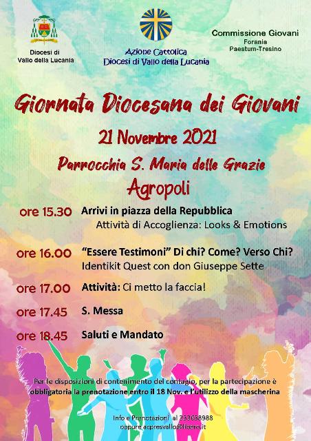 Sarà una domenica pomeriggio (21 novembre – Agropoli) da vivere all’insegna dell’amicizia, della preghiera e dell’invito ad essere testimoni. E’ obbligatoria la prenotazione, per le norme di contenimento del Covid, ma c’è davvero spazio per tutti. Vi aspettiamo!