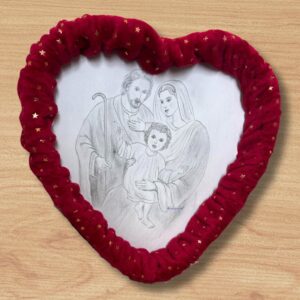 Il secondo oggetto, invece, è un cuore, con al centro il disegno, realizzato a mano, di una Sacra Famiglia.